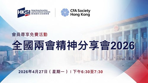 第十四屆全國人民代表大會第四次會議和政協第十四屆全國委員會第四次會議(統稱「兩會」)已於2026年3月上旬召開。為加深會員對國家發展重點及其對香港影響的了解,香港證券及投資學會 (HKSI Institute) 與 香港特許金融分析師學會 (CFA Society Hong Kong) 將合辦一場特別的兩會精神分享會,並邀請兩位傑出演講嘉賓 羅卓堅 太平紳士 及 蘇紹聰 博士 擔任主講。